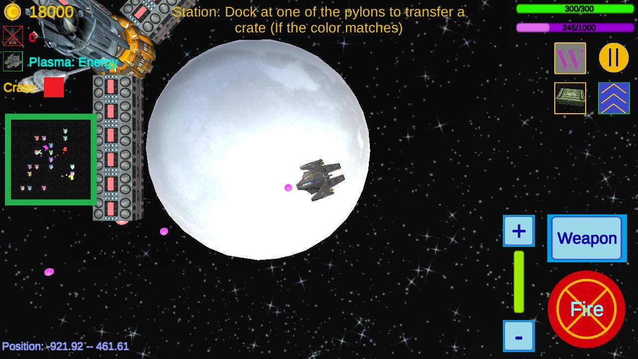 Chaque planète dispose d'une station spatiale en orbite pour faciliter le commerce. Pour gagner des crédits, accostez à la station spatiale et récupérez un colis de fret à code couleur. Ensuite, livrez ce colis à une autre station spatiale qui a besoin de cette cargaison.