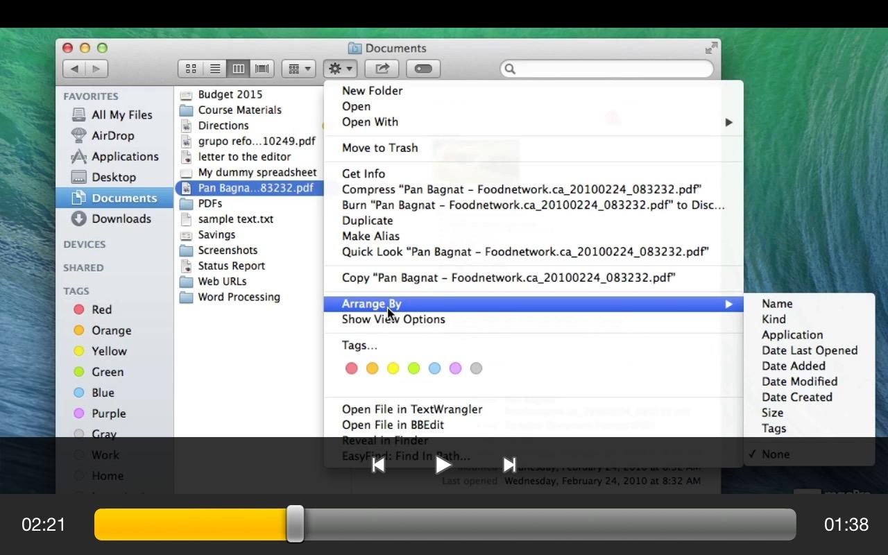 17. Utilisation de la barre d'outils de la fenêtre Finder (03:59)