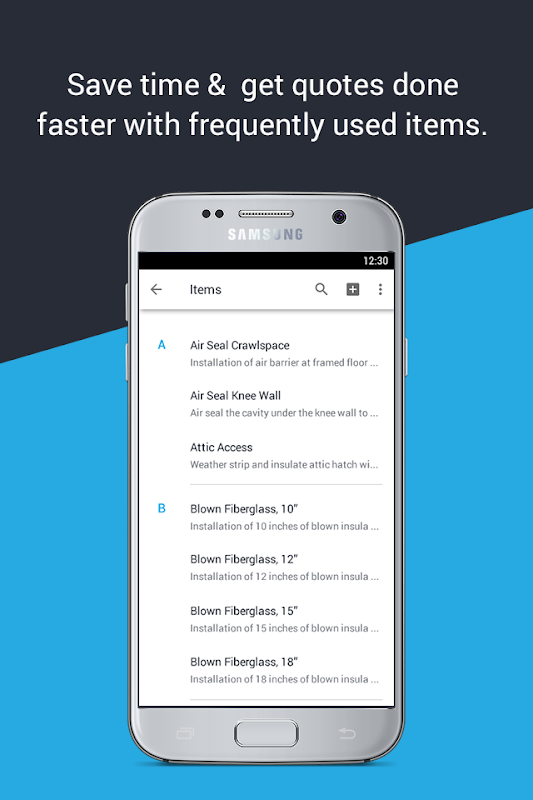 • Créez des estimations avec un accès facile aux listes d'articles personnalisés