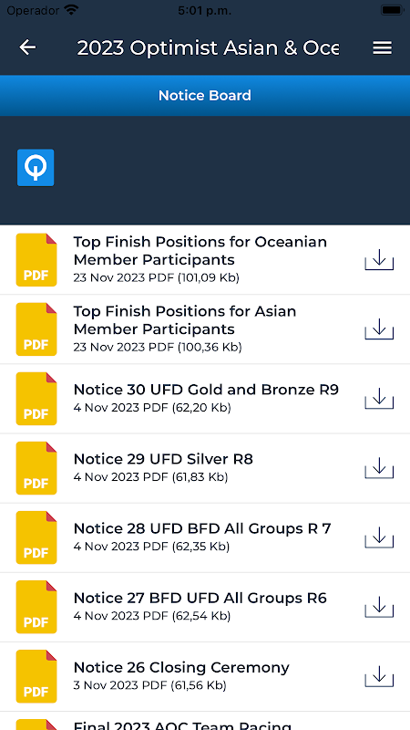 Informations en direct sur toutes les courses ; mises à jour constantes des résultats ; actualités quotidiennes, images et vidéos de la régate sont quelques-uns des exemples proposés par cette application pour vous permettre de suivre à la minute près tout ce qui se passe lors de chaque championnat majeur de la classe Optimist. De plus, si vous le souhaitez, vous pouvez recevoir des alertes de toute information pertinente sur les courses ou équipes que vous souhaitez suivre de près.