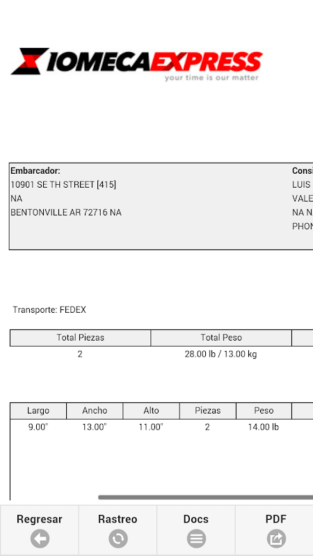 * Búsqueda de Recibos por Número de Recibo y/o Rastreo (Tracking).