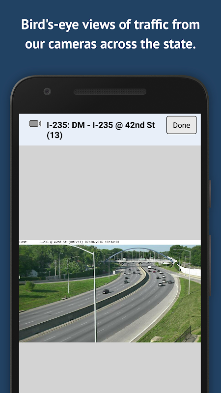 • A zoom-enabled map with selectable traffic event icons and surrounding camera views