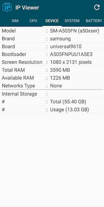 Informations sur votre IP, téléphone, Sim, CPU, système, appareil, batterie, capteur ... etc.