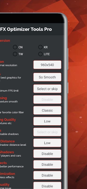 • Advanced GFX Tool: Get 25+ Readymade GFX Pack To choose from Very Low Graphics to Very High Graphics! Customize game graphics without any trouble of choosing most suitable one for your Device as GDX Tool Custom will choose it for you!