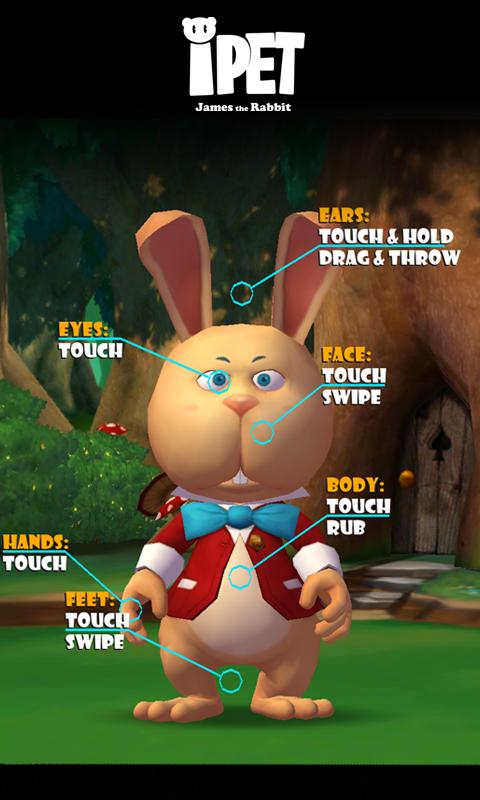 ● 머리, 눈, 귀, 배, 손, 다리를 터치하면 제임스가 반응합니다.