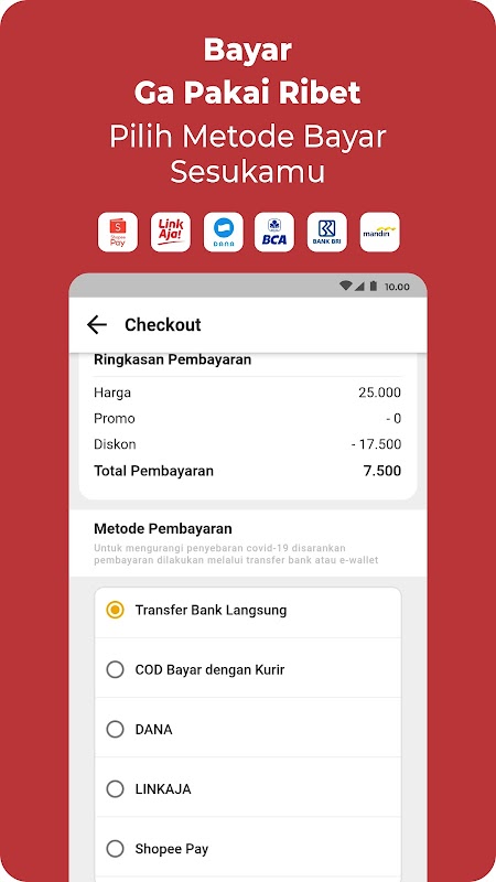 Vous voulez acheter des légumes mais vous ne voulez pas sortir ? Ne vous inquiétez pas, iSayur vous fournit différents types de légumes et de besoins de base. Vous venez de commander en fonction de vos besoins et il sera livré le lendemain.