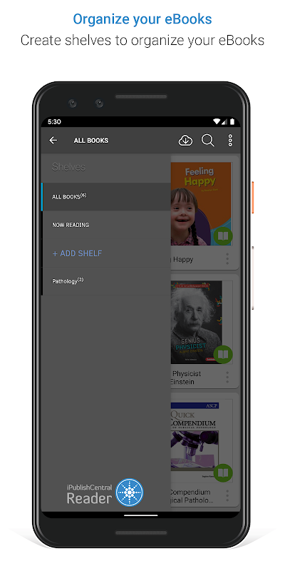 Avec le Reader App iPublishCentral vous pouvez lire des ebooks au format PDF et EPUB sur vos smartphones et tablettes Android. Vous pouvez organiser livres pour étagères, personnaliser votre expérience de lecture, ajouter des notes ou des points saillants à certains passages, marquer une page, et télécharger du contenu à partir de votre compte Dropbox et e-mails. Vos dernière page de lecture, les notes, les faits saillants et les signets sont synchronisés à travers les dispositifs lorsque la connectivité réseau est disponible. Ce synchronisations vous permet de choisir un livre d'où vous l'avez laissé sur un autre appareil.