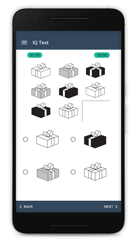 Détendez-vous et voyez votre QI par vous-même! Un grand nombre de tests de QI sont disponibles et calculeront votre intelligence. Mais aucun d'entre eux ne ressemble à celui-ci! Essayez le test, résolvez le test iq et demandez à votre iq de le montrer à vos amis, à votre famille et à tout le monde!