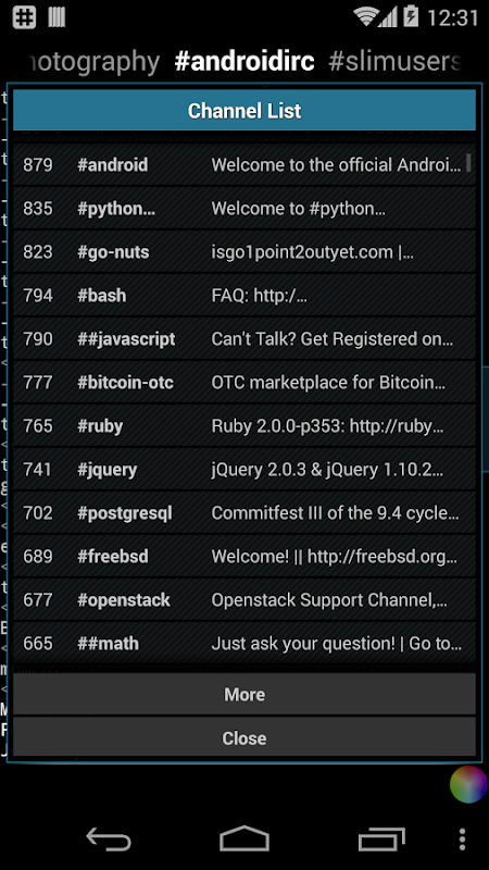 IRC pour Android ™ est le client Android Premier Internet Relay Chat. Mondes mieux que le reste. Auparavant connu sous le nom IRC Android.