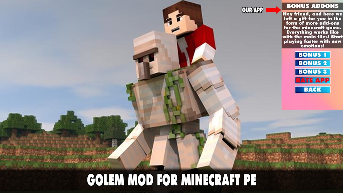 😀🤣Si vous en avez assez de la version régulière de Minecraft et que vous souhaitez diversifier le gameplay, vous pouvez installer l'une de nos modifications. C'est ce dont nous avons parlé plus haut. Mais ce ne sera pas un ajout ordinaire qui ajoute des animaux fabuleux, de nouveaux lieux ou accessoires, mais un mod unique. Vous pouvez télécharger le mod Iron Golem toujours mis à jour pour Minecraft Pocket Edition 2022 !🤣😀