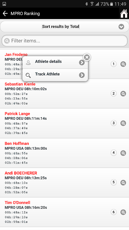 app tracker Ironman Résultats de la course depuis 2012 Course Cartes et GPX l'attribution des créneaux