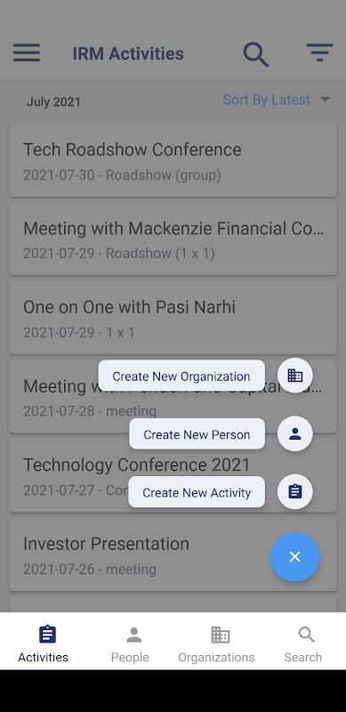 - Ajoutez facilement de nouveaux contacts et institutions dans votre CRM directement dans l'application. Les nouveaux contacts issus de réunions, roadshows, conférences et autres événements peuvent être mis à jour instantanément.