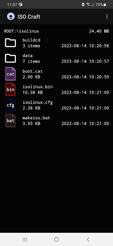 Créez des fichiers image ISO en déplacement. Ajoutez vos fichiers aux images ISO, les cartes SD externes sont également prises en charge. Compatible avec presque tous les lecteurs CD et DVD ainsi qu'avec d'autres applications Android capables de lire les images ISO.