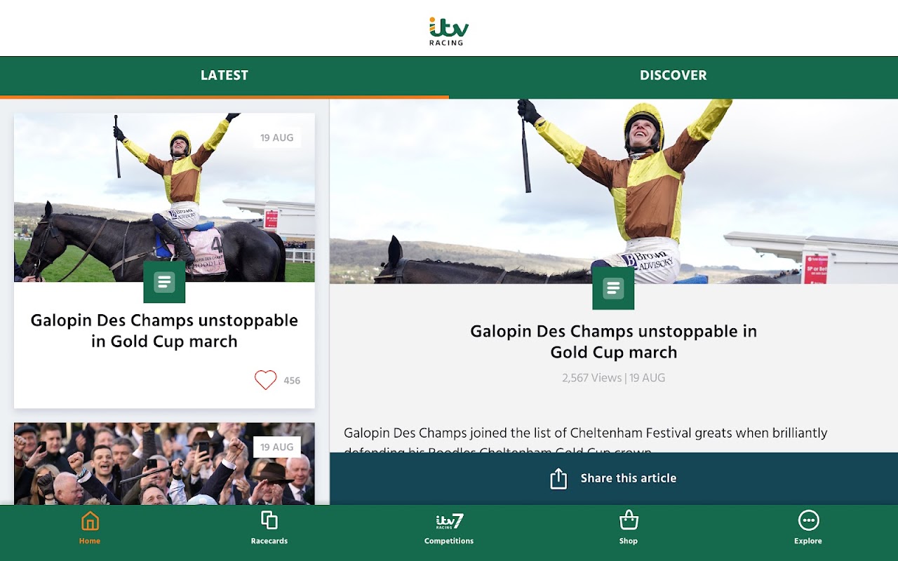 Regardez des extraits de toutes les courses en direct d'ITV Racing, accédez à des vidéos exclusives avec nos présentateurs, restez informé des dernières nouvelles sur les courses, participez à nos sondages et testez vos connaissances en course avec nos quiz diaboliques.
