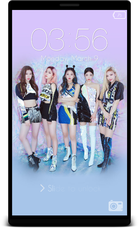 This lock screen is based on Itzy theme. There are many Itzy HD backgrounds in this app. You can unlock your phone using different methods like Slide to unlock, enter passcode, draw pattern, pin, etc.