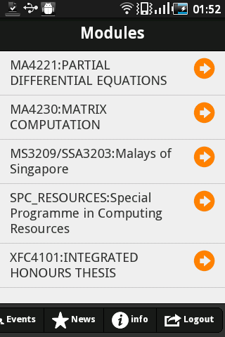 if you find the application laggy on your phone, you may want to try IVLE for NUS(poor man's version). As the light version reduces a lot of animations to work on low end machine.