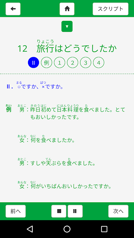 Cette application contient des exercices de compréhension orale pour le manuel «文法まとめリスニング初級1―日本語初級1 大地準拠―».