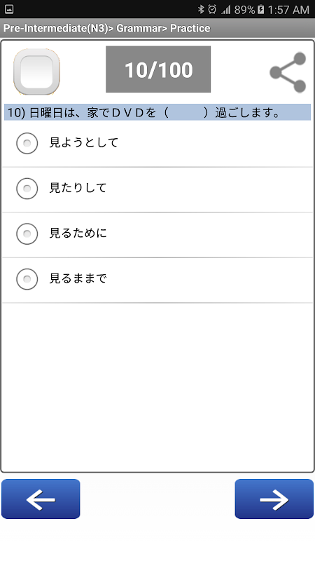 +) Mode pratique: Toutes les questions sont affichées dans l'ordre numérique, l'utilisateur peut choisir toute question à tester. La question qui a été testé sera noté.
