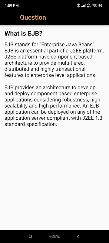 Vous préparez un entretien technique ? Cherchez pas plus loin! Java Beans (EJB) est là pour vous aider à exceller dans vos entretiens techniques. Que vous soyez un nouveau venu qui débute votre carrière ou un professionnel expérimenté cherchant à passer au niveau supérieur, notre application fournit une collection complète de questions et réponses d'entretien pour améliorer votre préparation et augmenter vos chances de réussite.
