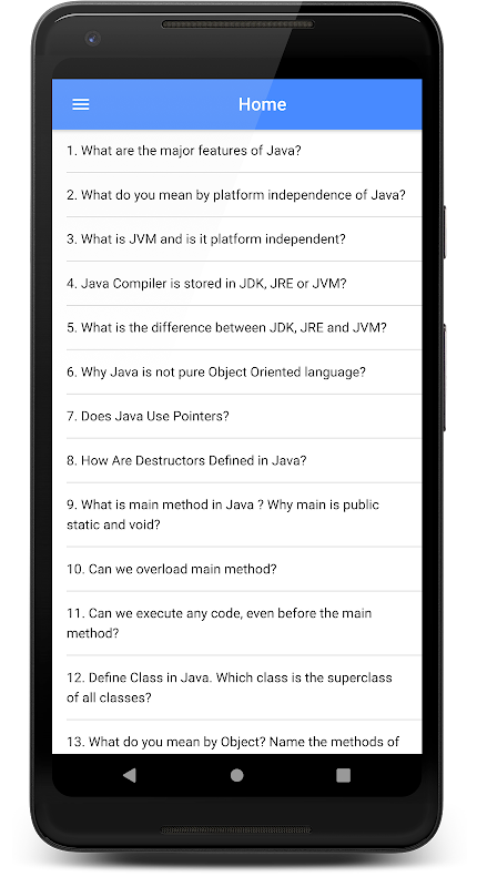 Java Interview Questions and Answers is a simple Android application that lists down 125+ most commonly asked Java interview Questions with Answers represented in an intuitive fashion.