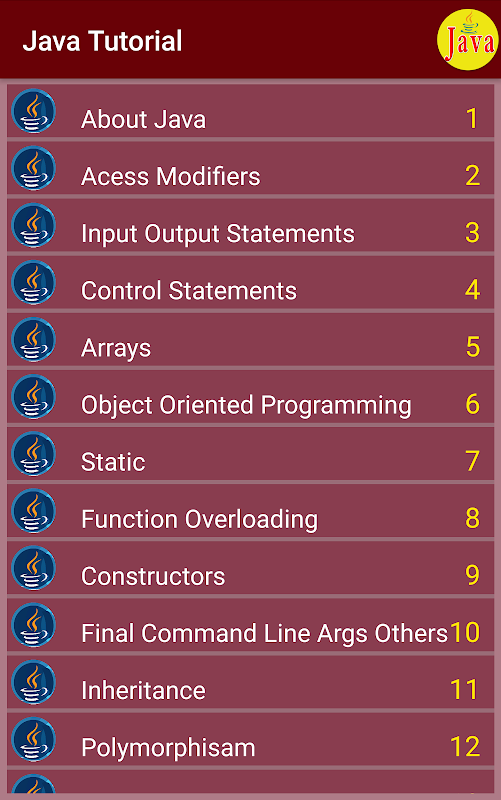 cette application couvre tous les sujets principaux de Java, y compris