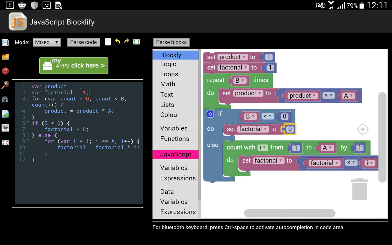 Modifier le code JavaScript avec des blocs. Votre éditeur js visuel