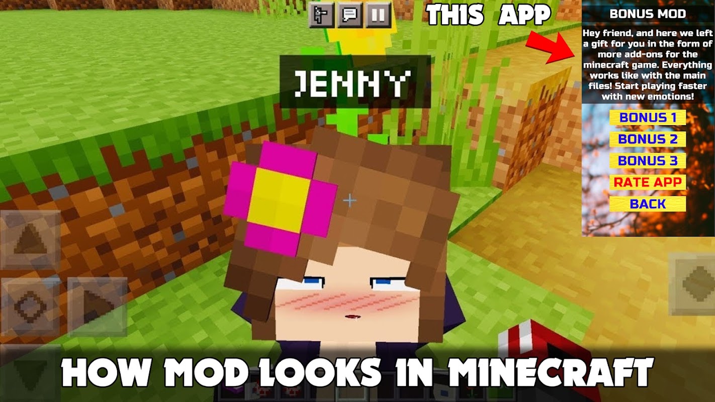 🤩 Jenny Mod for Minecraft PE 🤩 this is a launcher app that helps you import mods into a game called MCPE!