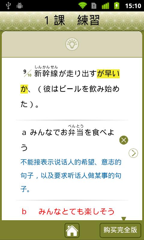 “练习”:在每一课范围之内,随机出10道题。附带提示·解说