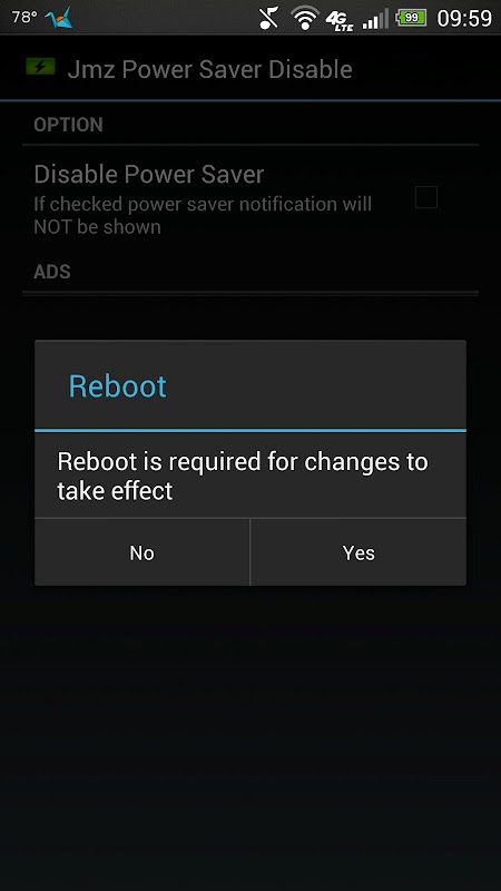 This simply disables the Power Saver Notification that appears on HTC Jellybean Sense devices. Reboot is required for change to take effect.