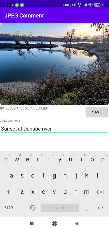 Digital photos (e.g. taken by your camera) are stored in your mobile as JPEG files. Thanks to the JFIF (JPEG File Interchange Format), digital photo data can be stored into file. But JFIF offers not only storing photo's visual data, but also offers storing other useful data (like user comments, Exif, ...). This application brings to you handy interface to attach (write, rewrite or remove) photo comments into JPEG file. If you copy your photo somewhere, comment is always travelling with photo and cannot be lost. Sure, photo's pixel data are not touched with text comments ;-)