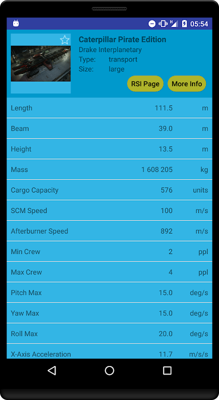 Application à explorer les navires de jeu Star Citizen en utilisant les informations de la référence officielle.