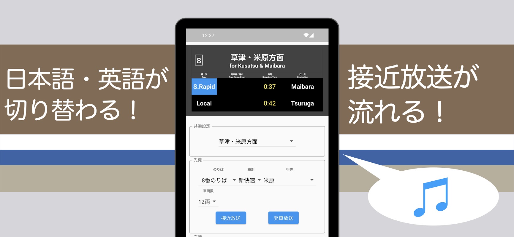 Nous avons reproduit les indications d'affichage de la station, les annonces d'approche et les annonces de départ pour la ligne JR Kyoto et la ligne Kobe.