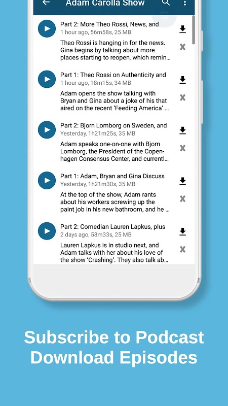 Download podcast mp3 you like without any additional cost and limitation. Pick any podcast you like, set it to auto-download while you sleep. Save your cell data for when it matters.