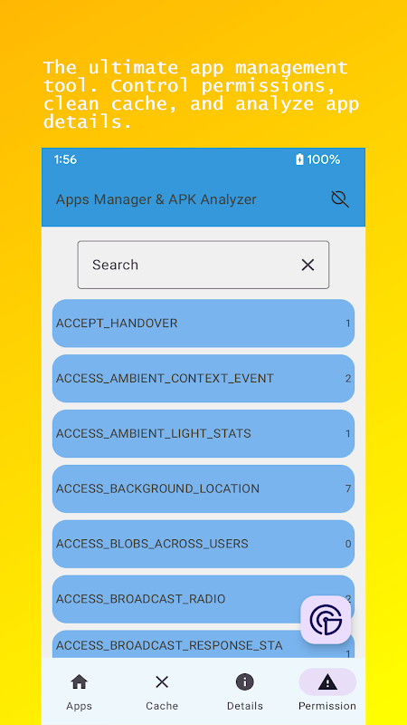 Recherchez et enregistrez les applications APK installées sur votre appareil. Gérez et analysez les autorisations.