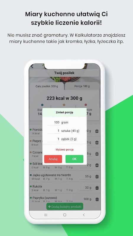- calcul rapide de la valeur calorifique d'un repas - avez-vous besoin d'informations rapides sur la valeur calorifique de votre repas? Ou peut-être une seule portion? Avec notre application, vous obtiendrez facilement toutes les informations nécessaires.