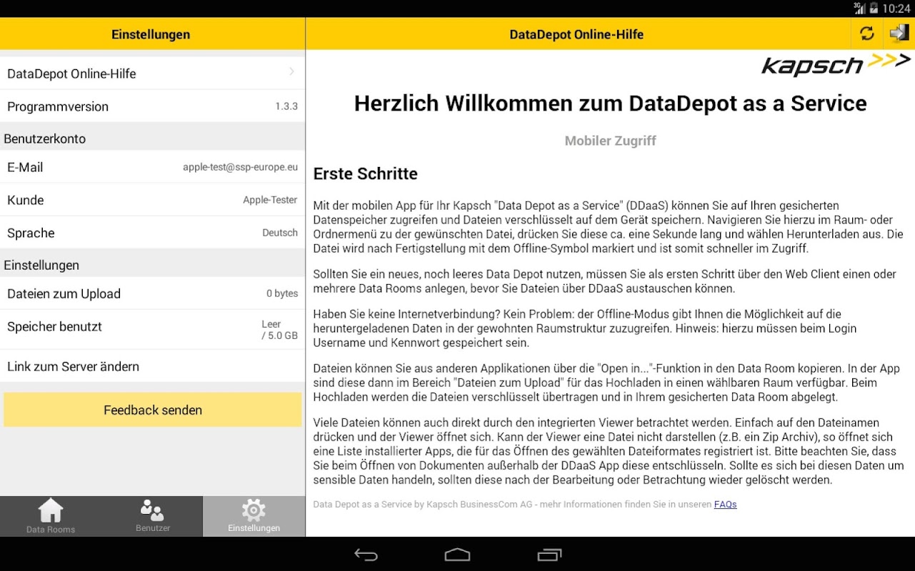 Die mobile App erweitert den Zugriff auf das DataDepot as a Service Webportal um folgende Möglichkeiten: