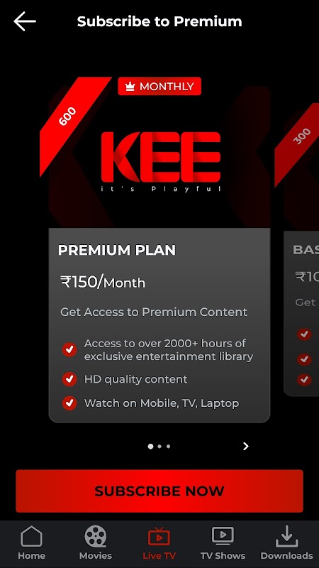 Kee est conçu pour une commodité ultime. L'interface conviviale facilite la navigation et la recherche. Que vous soyez en déplacement avec l'application Android ou que vous vous détendiez à la maison sur l'application Web, Kee offre une expérience de divertissement fluide.