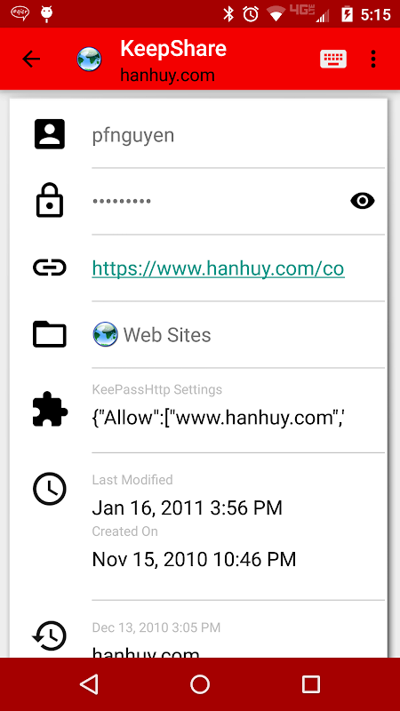 * KeePass databases with many (large) attachments will cause KeepShare to crash, to workaround, remove any large file attachments and trim the database history.