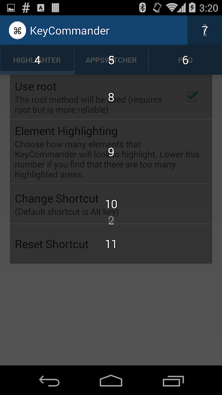 Using the highlighter, all important views will be highlighted and assigned numbers you can type (on your keyboard) to click on those elements.
