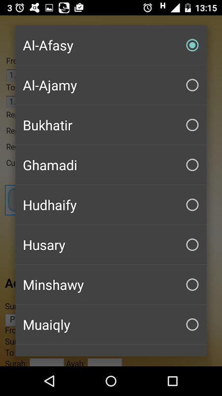 Le Ayah sera automatiquement chargé dans le Coran enfants liste facile récitation d'application Memorisation, les ayahs choisis seront récités en continu jusqu'à ce que vous les mémoriser.
