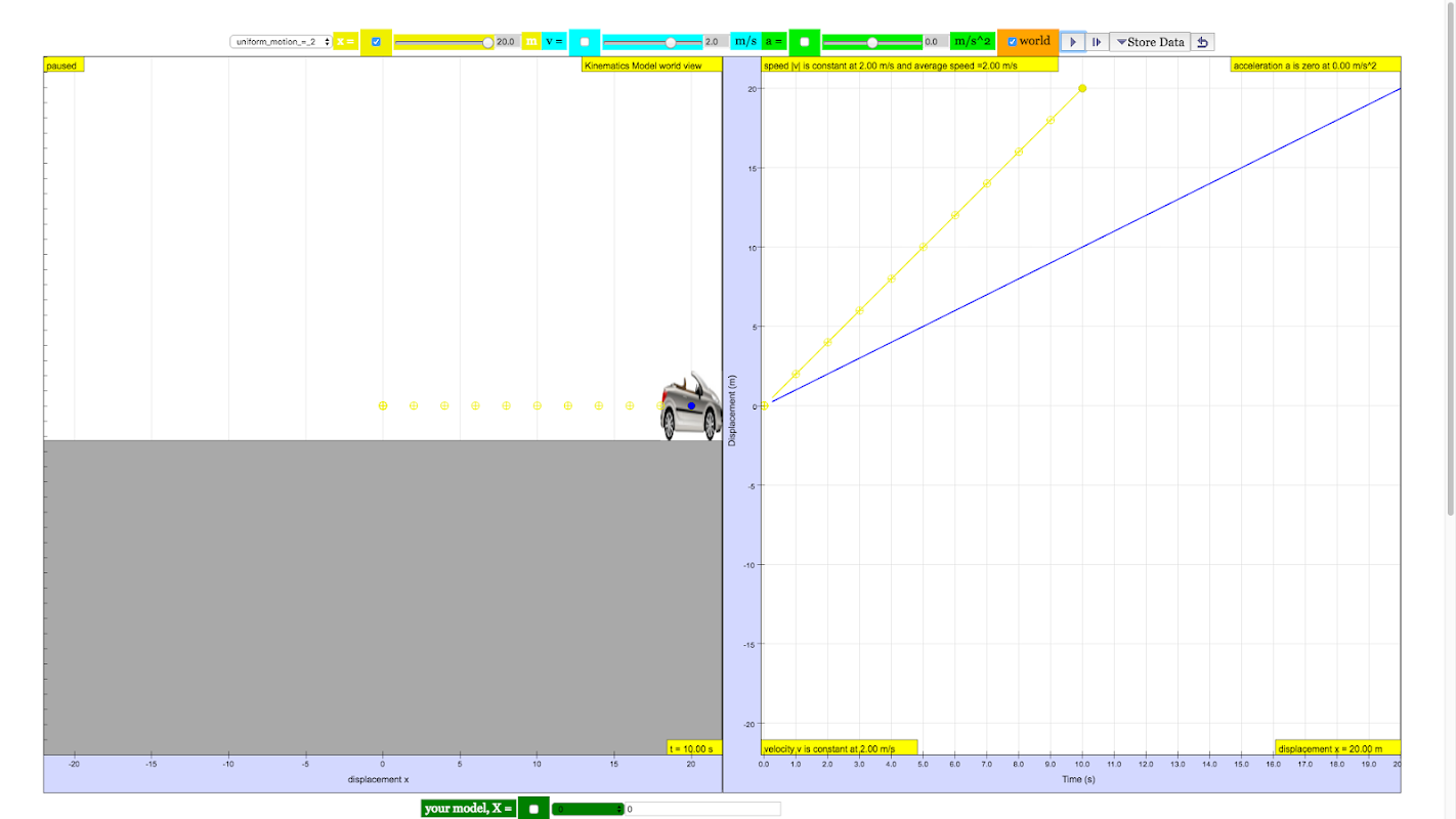 (Ii) se déplaçant avec une vitesse uniforme, l'utilisation du modèle mathématique progressive est encouragée par exemple X = 1 * t pour un mouvement à vitesse constante de v = 1 m / s