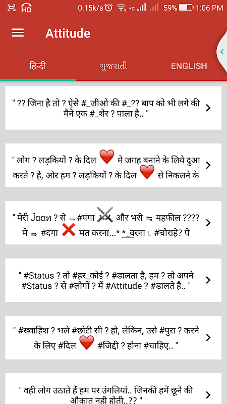In this Application You can Find Various Category of Status and Dp and they are as follows