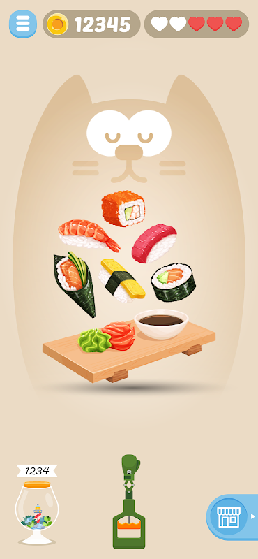 You can help the cat earn coins to upgrade toys, change dishes, change beautiful glass bottles to decorate.