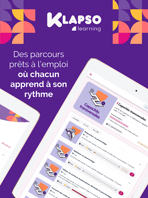 Utilisable sur smartphone, tablette et PC, KLAPSO learning est accessible partout et à tout moment, même hors connexion. Transformez votre façon d'apprendre !
