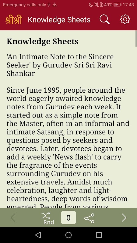 Fiches de connaissances — « Note intime au chercheur sincère » par Gurudev Sri Sri Ravi Shankar. Application hors ligne ; les textes sont disponibles sans Internet.