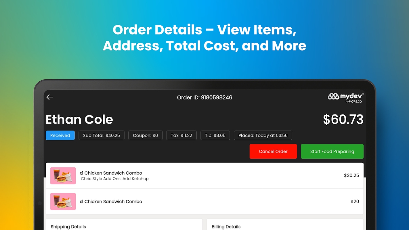 Cette application est conçue pour que les employés puissent facilement recevoir, examiner et accepter les commandes passées à votre entreprise. Il est rapide, fiable et conçu pour vous aider à rester organisé et à répondre rapidement aux clients.