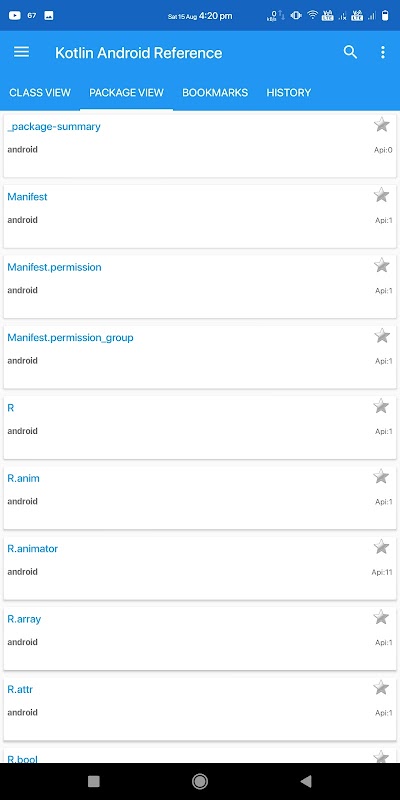 L'application contient 7000+ (300+ packages) des informations de classe Android jusqu'au niveau d'API 30 (Android 11.0).