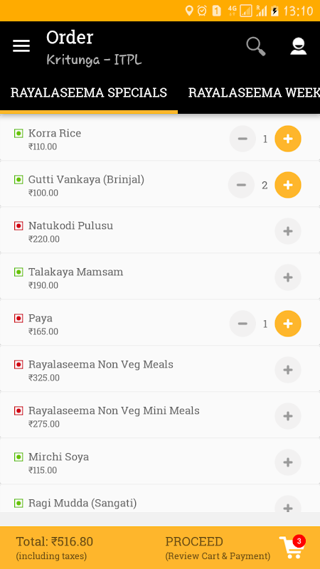 Kritunga application for Bangalore Restaurants