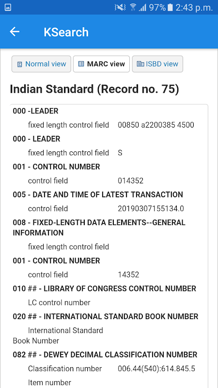 KSearch is an app providing access of your library on the fly. The App directly connects your device to your KOHA server for real time information retrieval . The smartly designed interface gives a joyful library experience.