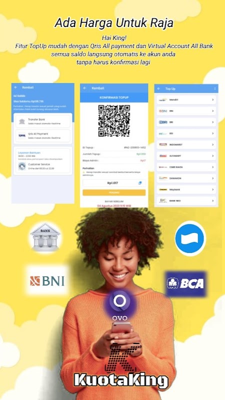 Méthodes de dépôt de recharge de compte de quota via des comptes bancaires virtuels et Qris tous les paiements sont entièrement automatiques